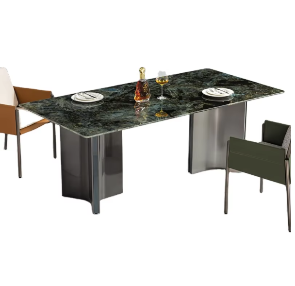 Italian Luxury Modern Rectangle Dining Table Chair Set Light Slate Marble Countertop Extendable Metal for Home Furniture Living